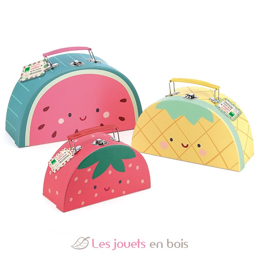 Accueil > Décoration, mobilier > Mobilier chambre d'enfant > Coffres à jouets et meubles de rangement > Set de 3 valisettes fruits gourmands