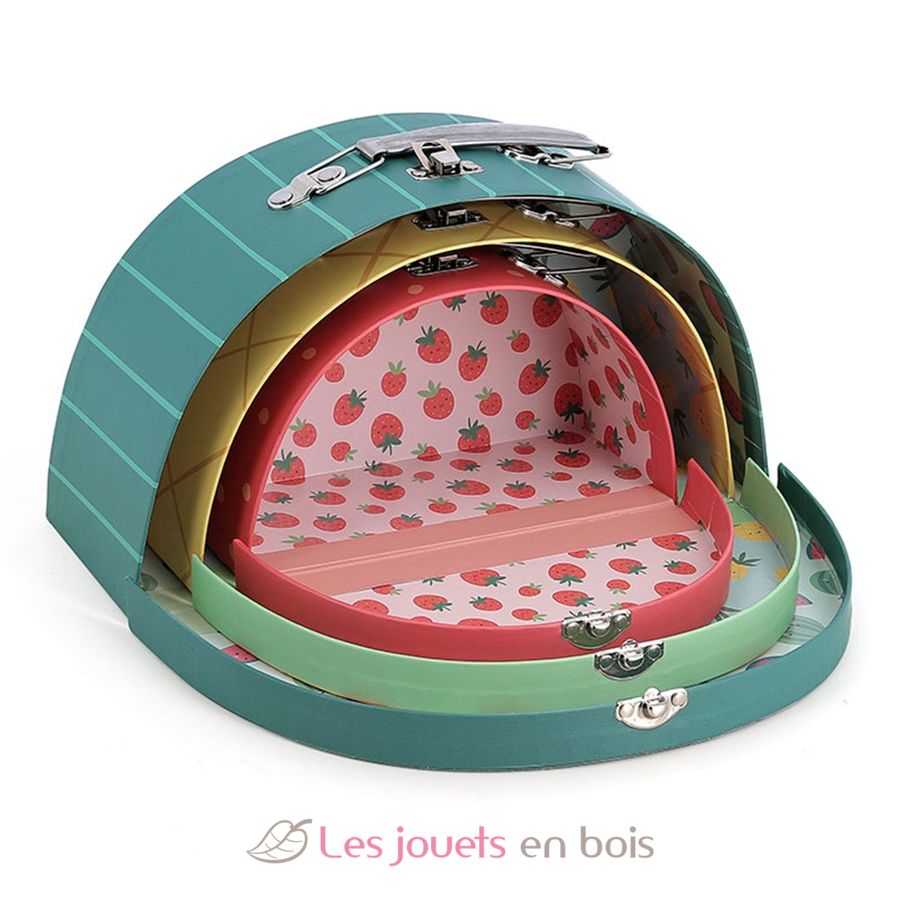 Set de 3 valisettes fruits gourmands de la marque Vilac. Référence 7122.