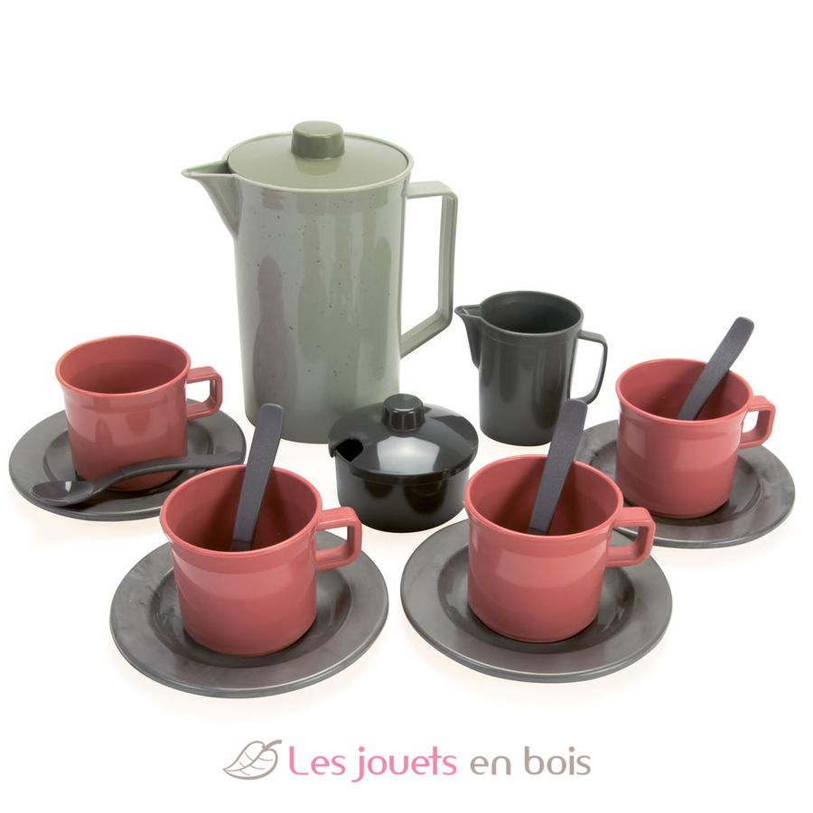 Ce set de café est un charmant ensemble de jeu de 17 pièces. L'ensemble se compose d'une cafetière, de 4 tasses avec soucoupes, de 4 cuillères, d'un pot à lait et d'un sucrier.