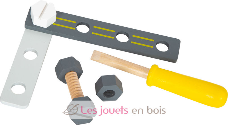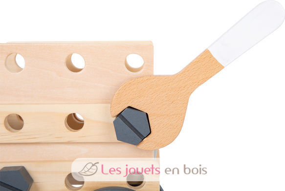 Avec ce kit de construction en bois, les petits bricoleurs peuvent se défouler de manière créative et créer des constructions individuelles. Avec des bandes perforées, des cubes filetés, des vis, des rondelles de bois et des écrous, on pratique la construction tridimensionnelle et, avec une clé et un tournevis, tous les éléments peuvent être assemblés.