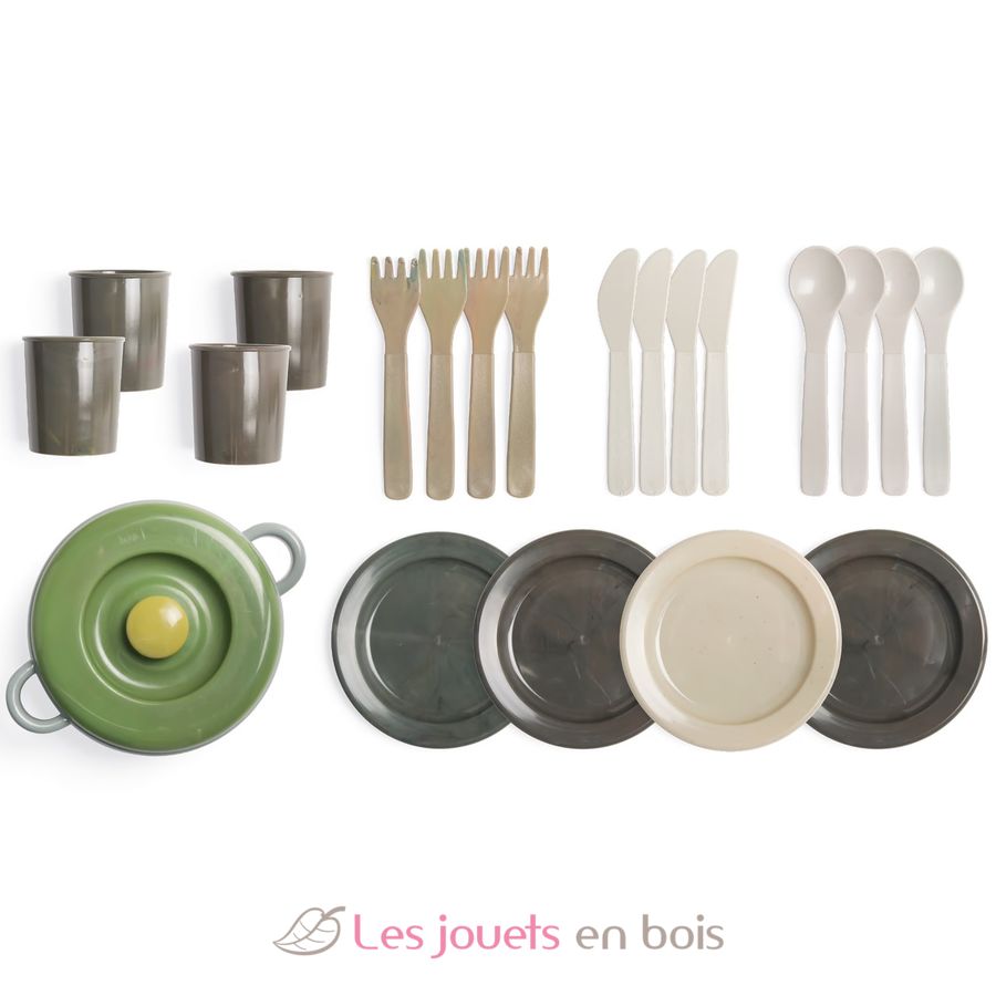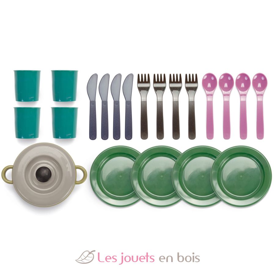 Ce set de repas est un charmant ensemble de jeu de 22 pièces. L'ensemble se compose 4 assiettes, 4 tasses, 4 ensembles de couverts et une casserole avec couvercle.