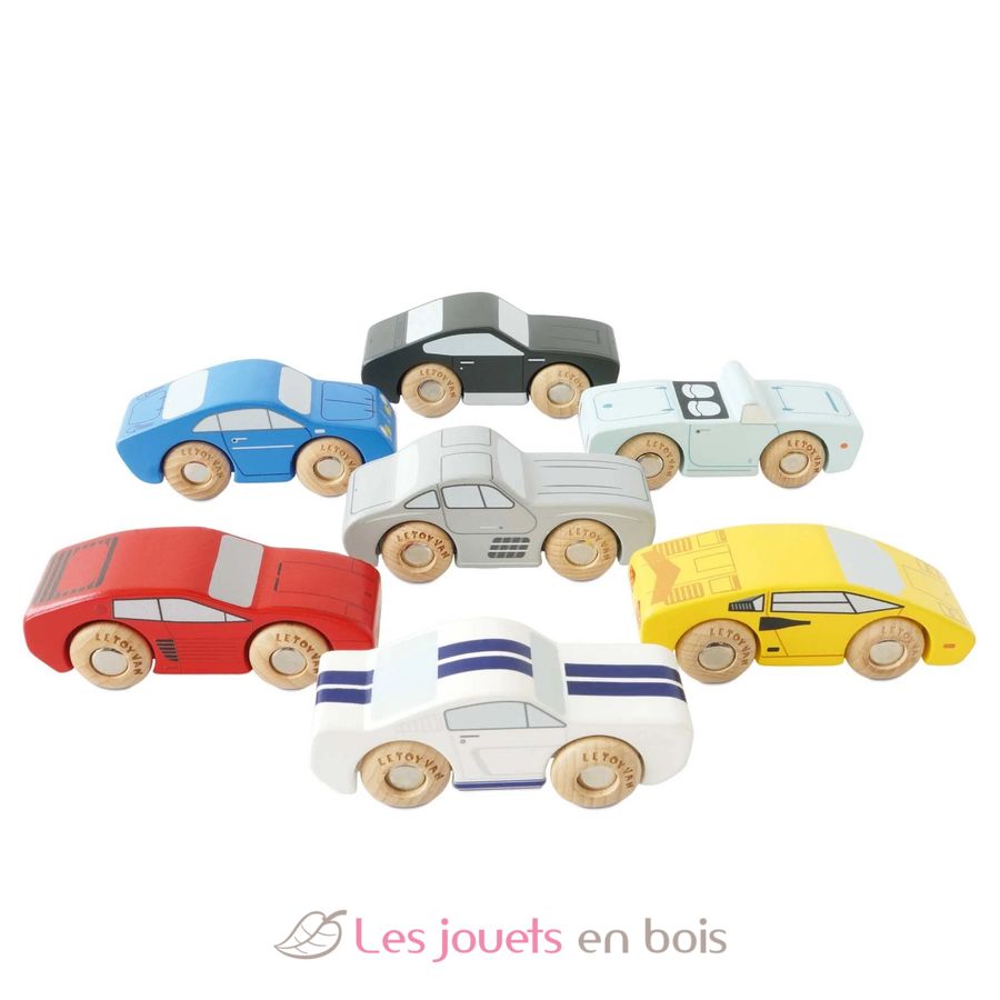 Une charmante collection de 7 voitures de sport en bois certifiées FSC, conçues pour captiver petits et grands (longueur environ 9 cm).