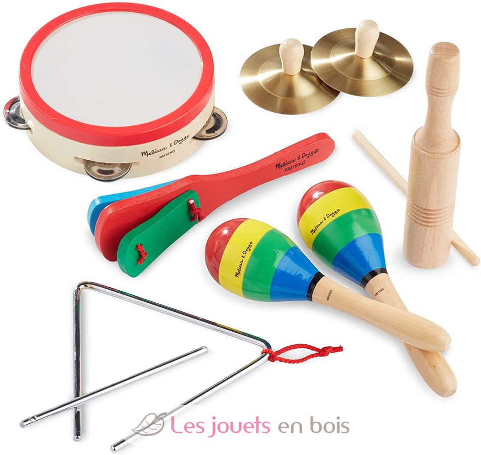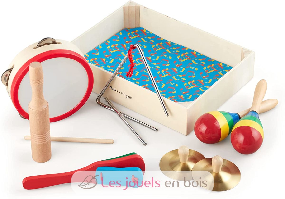 Ce set de 6 instruments de percussions (en 10 pièces) initie les enfants à la musique de manière ludique en exerçant leur sens du rythme et en renforçant leur motricité fine.