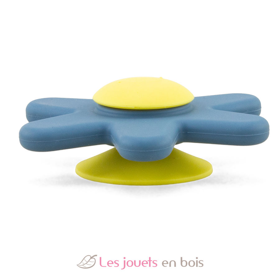 Une ventouse puissante située à l'arrière permet une fixation facile sur toute surface lisse et non poreuse (baignoire, faïence, chaise haute, miroir, réfrigérateur et vitre de voiture). La toupie adhère fermement, permettant des rotations ultra-stables et un jeu en toute autonomie.
