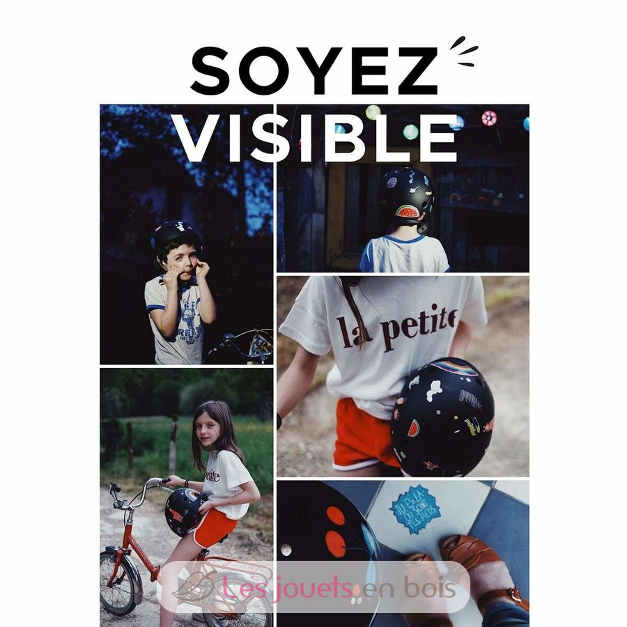 Rainette propose un large choix d'autocollants rétroréfléchissants, beaux, colorés, parfois décalés, pour tous les âges. Personnalisez le casque de votre enfant (ou le vôtre) et rendez le unique ! Collez ces stickers sur votre casque de vélo, trottinette, skateboard, hoverboard, engin du futur... Un bon moyen pour que votre enfant s'approprie son casque et adore le porter !