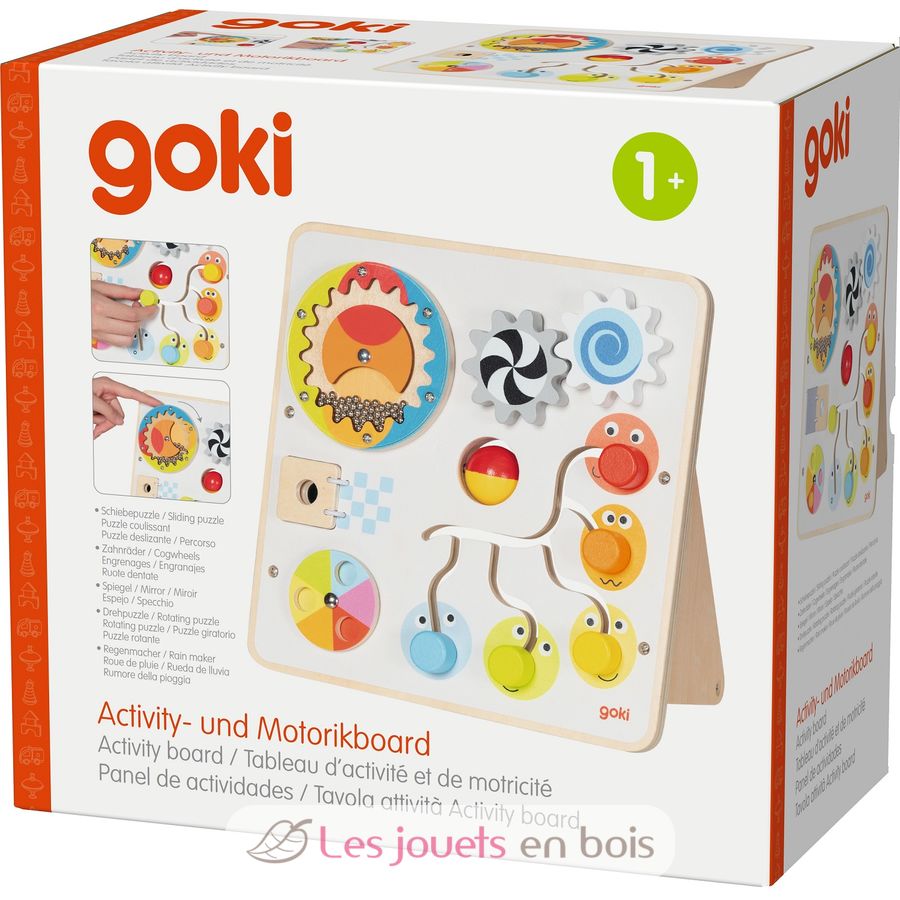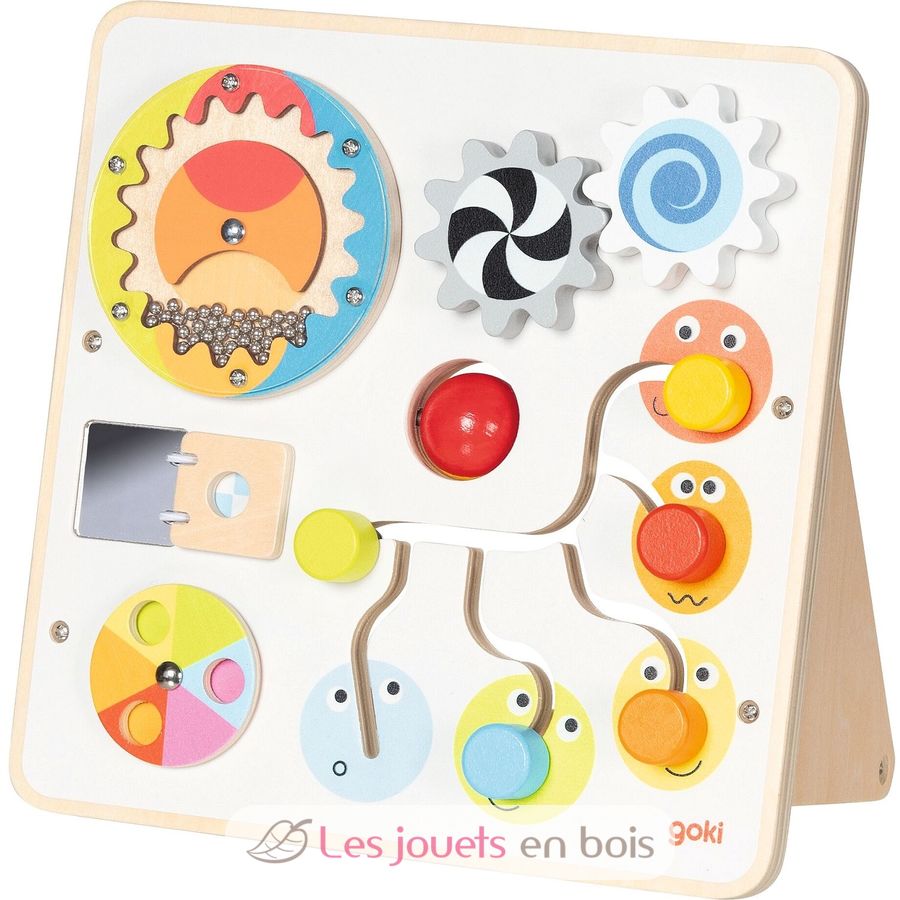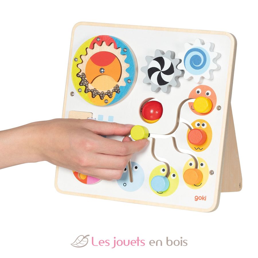 Tableau d’activité et de motricité, un jouet premier âge de la marque Goki.