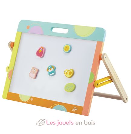 Découvrez nos tableaux et chevalets en bois pour enfants. Tableau noir à craie pour enfant, petit tableau s'ajustant à la hauteur de l'enfant, tableau double face constitué d'un tableau blanc sur un côté et d'un tableau noir de l'