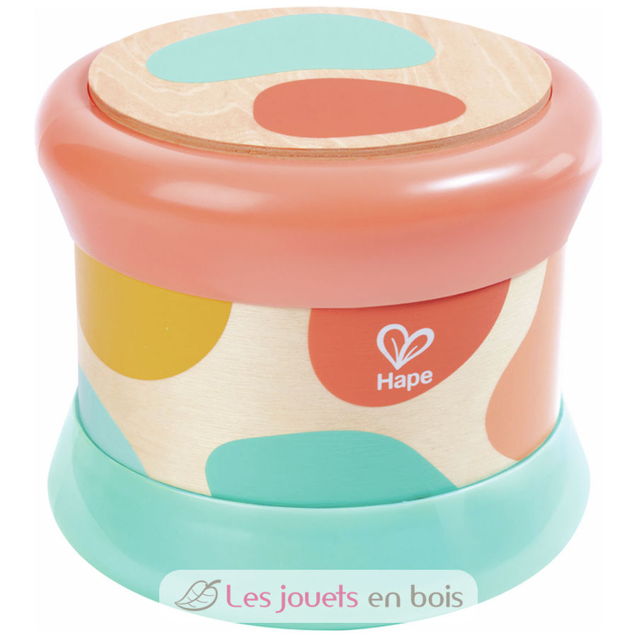 Tambour de bébé turquoise, un jouet musical de la marque Hape.