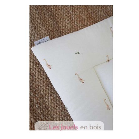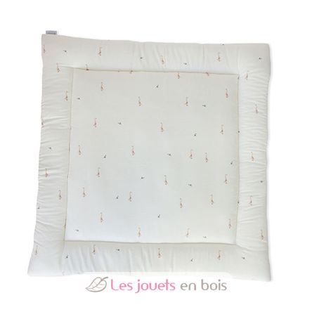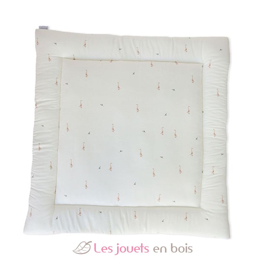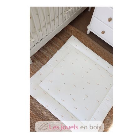 Fabriqué au Portugal, à partir de coton certifié 100% biologique et un rembourrage 100% polyester. Dimensions du tapis : 100 x 100 cm.