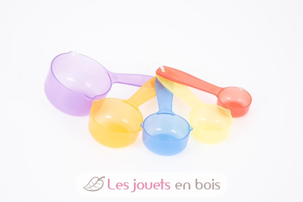 Facile à manipuler grâce à de simples becs verseurs de chaque côté, les enfants s'amuseront à verser des liquides tout en appréhendant les mesures. Ces tasses sont parfaites pour que votre enfant puisse les utiliser dans les jeux de sable et d'eau, pour réaliser des potions ou des gâteaux de sable... Les tasses s'emboîtent pour un rangement pratique.