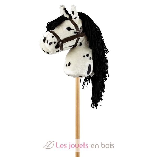 Avec ce cheval bâton blanc tacheté, les enfants peuvent vivre des heures de jeu imaginatif. Ils pourront jouer aux chevaliers, aux cow-boys et encore aux indiens... Ou peut-être préféreont-ils jouer à l'école d'équitation et sauter par-dessus des obstacles, galoper, pratiquer le dressage ou le hobby horse ?