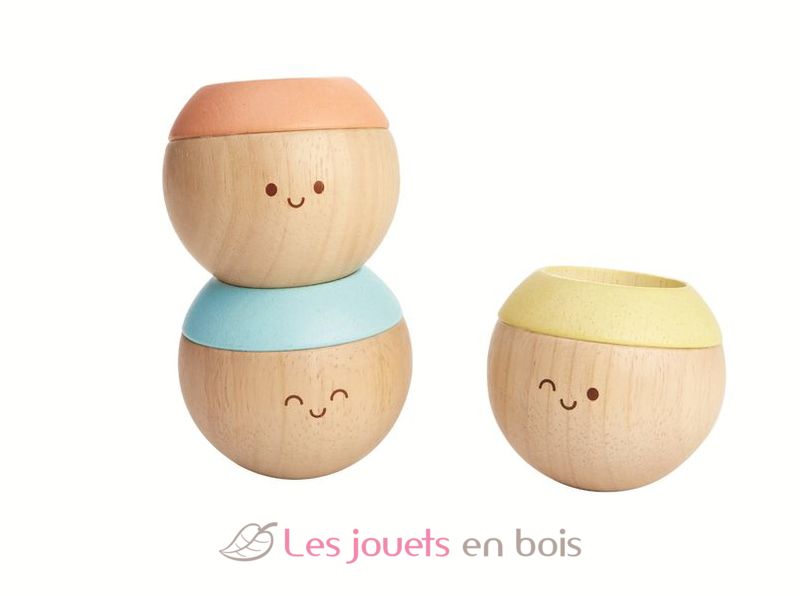 Têtes sensorielles, 3 petites boules aux couleurs pastels de la marque PlanToys. Ré.f PT5258.