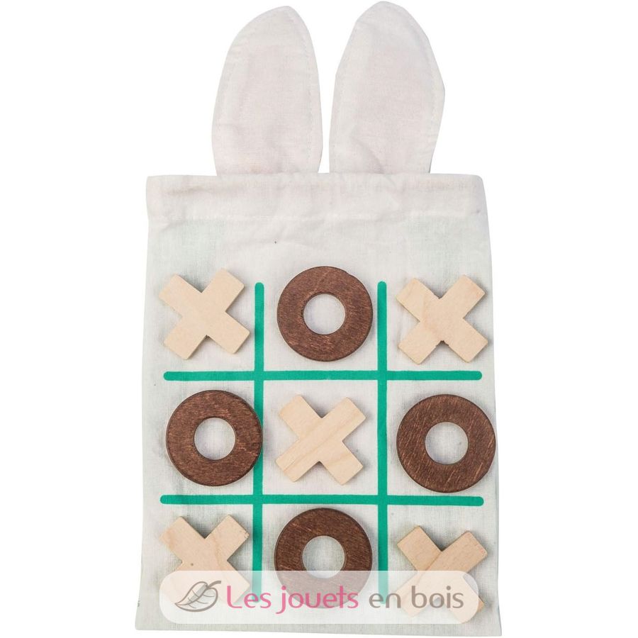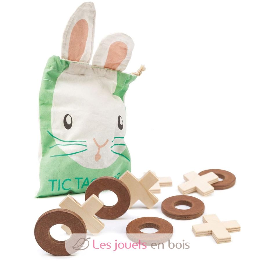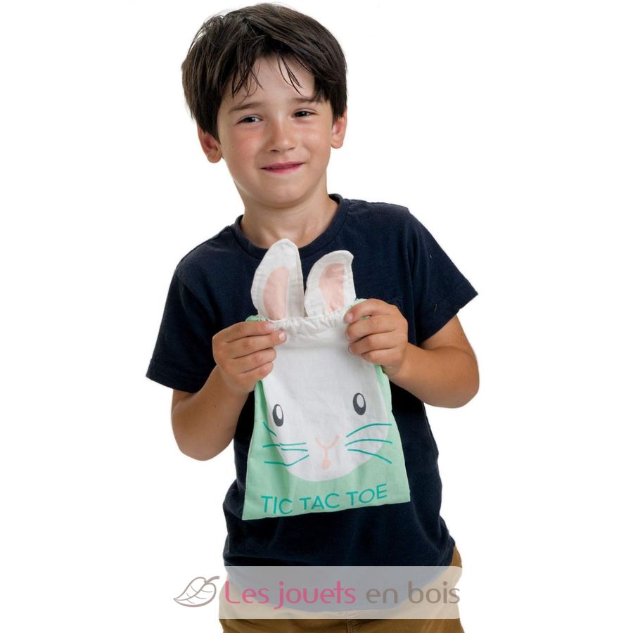 Amusez-vous avec vos petits amis avec ce jeu de réflexion Tic Tac Toe. Une version revisitée du jeu du morpion, livrée dans un sac en tissu à l'effigie d'un adorable lapin pour un rangement facile. Pour jouer, il suffit de sortir les pièces et d'utiliser la grille imprimée au verso du sac.