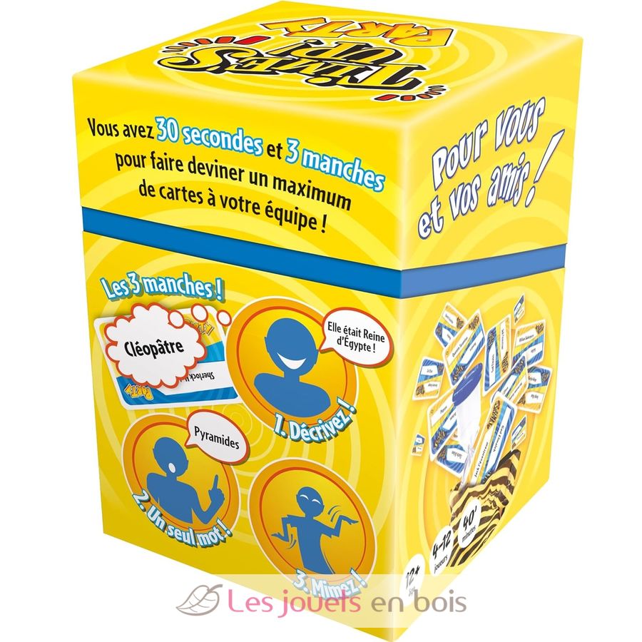 Time’s Up est un jeu à déguster en famille ou entre amis, dans lequel vous devrez deviner et faire deviner l’identité de 836 personnalités variées (réelles ou fictives). Il faudra être malin et rapide et ne pas avoir peur de vous marrer ! Rassurez-vous, pas besoin de connaître le dictionnaire par coeur, toutes les méthodes seront bonnes : analogie, jeux de mots, mimes, ce sera à vous de trouver la plus efficace !
