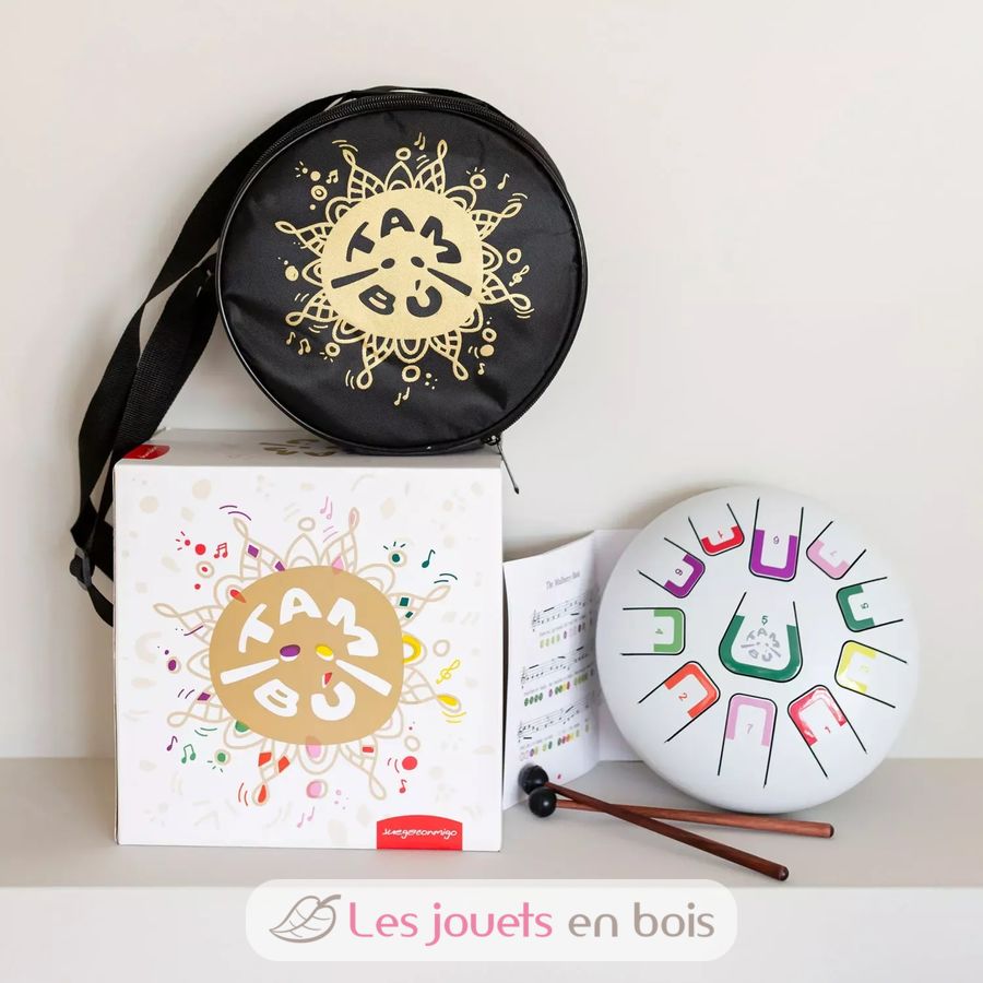 Le Tambú est livré avec des partitions en chiffres et en couleurs, très faciles à interpréter pour ceux qui débutent. Grâce à son code couleur et numérique, le tambour à langue Tambú permet de créer des mélodies magiques sans aucune connaissance musicale préalable. Cette simplicité permet aux enfants et aux adultes de profiter de la musique dès le premier instant.