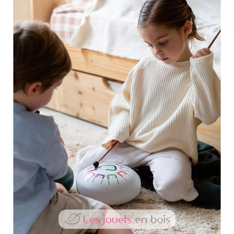 Accordé en Sol majeur (G) et doté d'une octave (gamme diatonique majeure), ce tongue drum permettra aux enfants, comme aux plus grands, de s'initier à la musique tout en s'amusant. Cet instrument permet un premier pas dans le monde merveilleux de la musique.