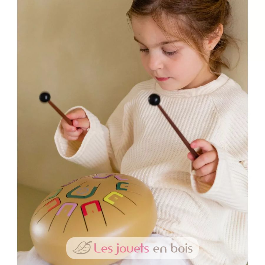 Accordé en Sol majeur (G) et doté d'une octave (gamme diatonique majeure), ce tongue drum permettra aux enfants, comme aux plus grands, de s'initier à la musique tout en s'amusant. Cet instrument permet un premier pas dans le monde merveilleux de la musique.