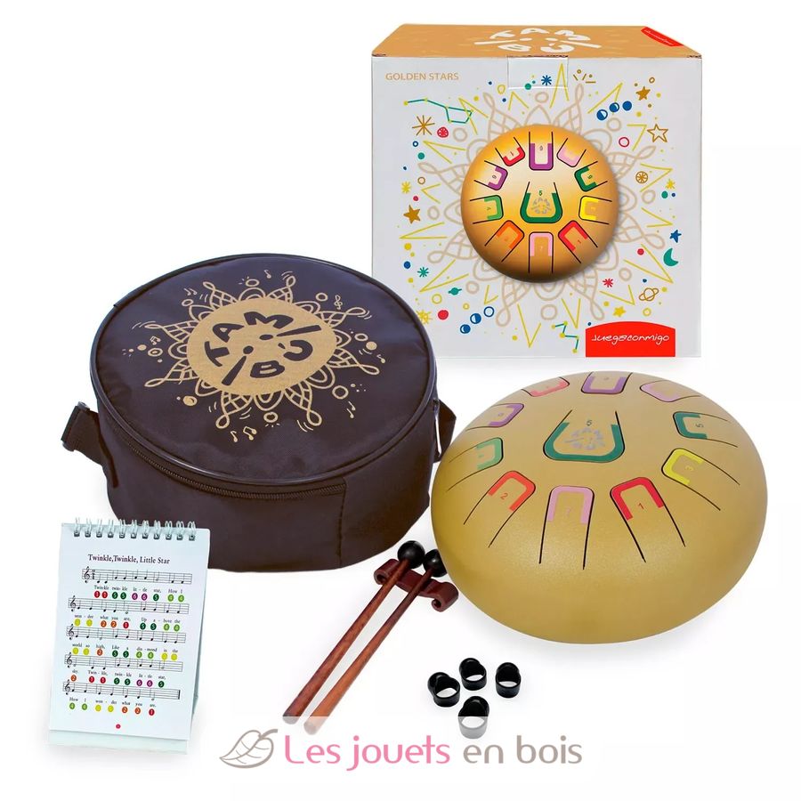 Tambour à langue, Tambú 11 notes, doré (Golden Stars). Diamètre 20 cm.