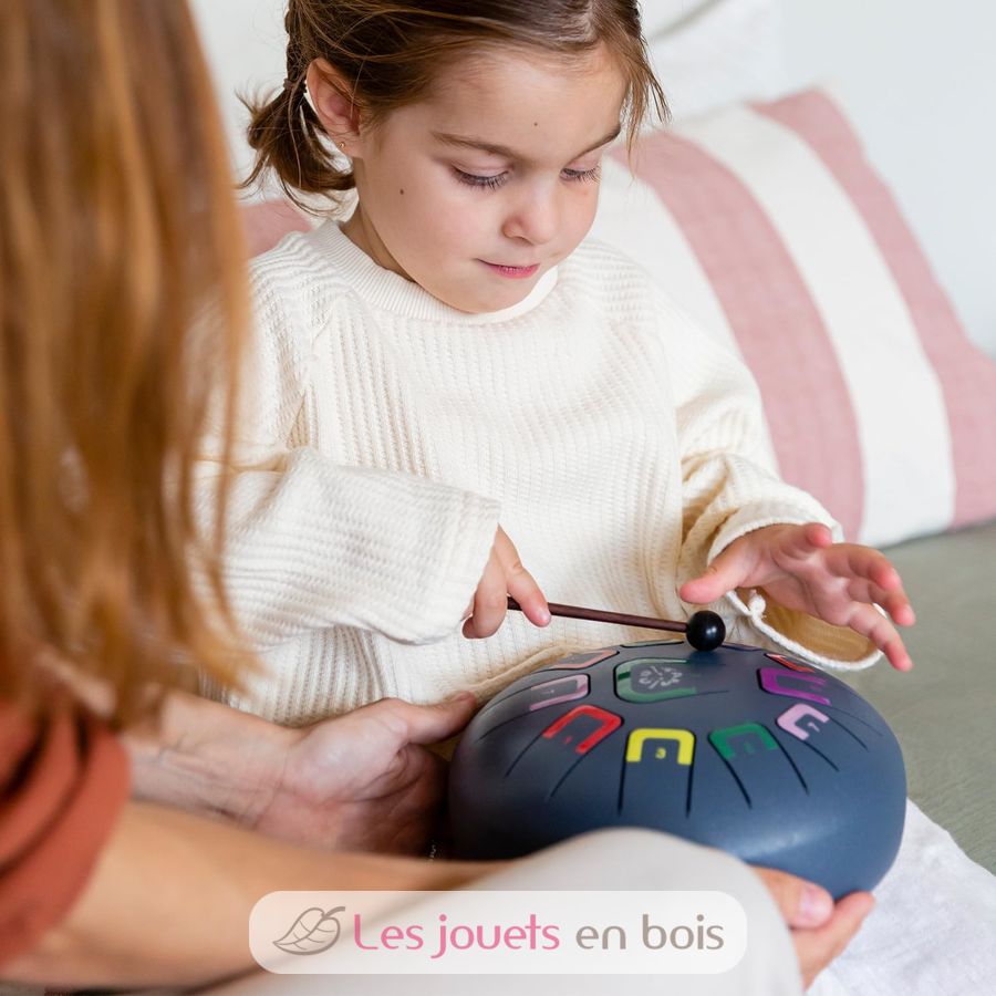 Accordé en Sol majeur (G) et doté d'une octave (gamme diatonique majeure), ce tongue drum permettra aux enfants, comme aux plus grands, de s'initier à la musique tout en s'amusant. Cet instrument permet un premier pas dans le monde merveilleux de la musique.