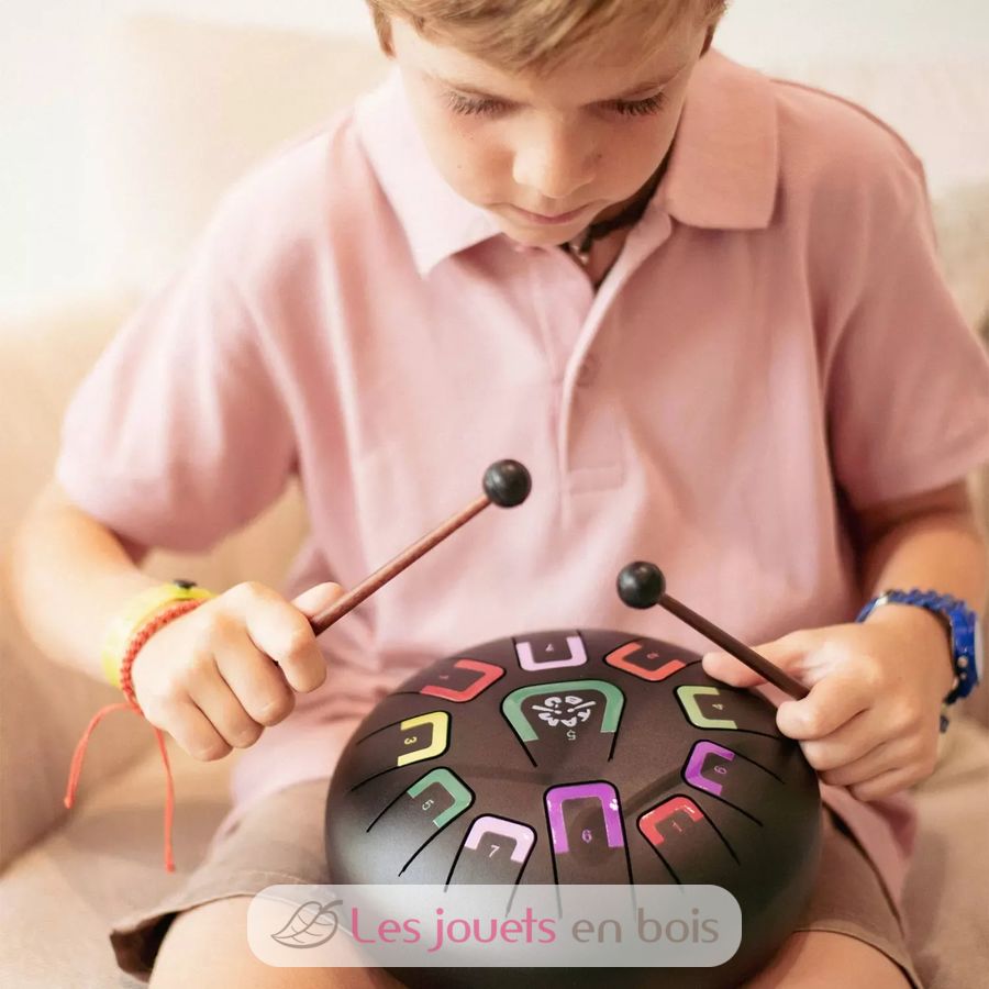 Accordé en Sol majeur (G) et doté d'une octave (gamme diatonique majeure), ce tongue drum permettra aux enfants, comme aux plus grands, de s'initier à la musique tout en s'amusant. Cet instrument permet un premier pas dans le monde merveilleux de la musique.