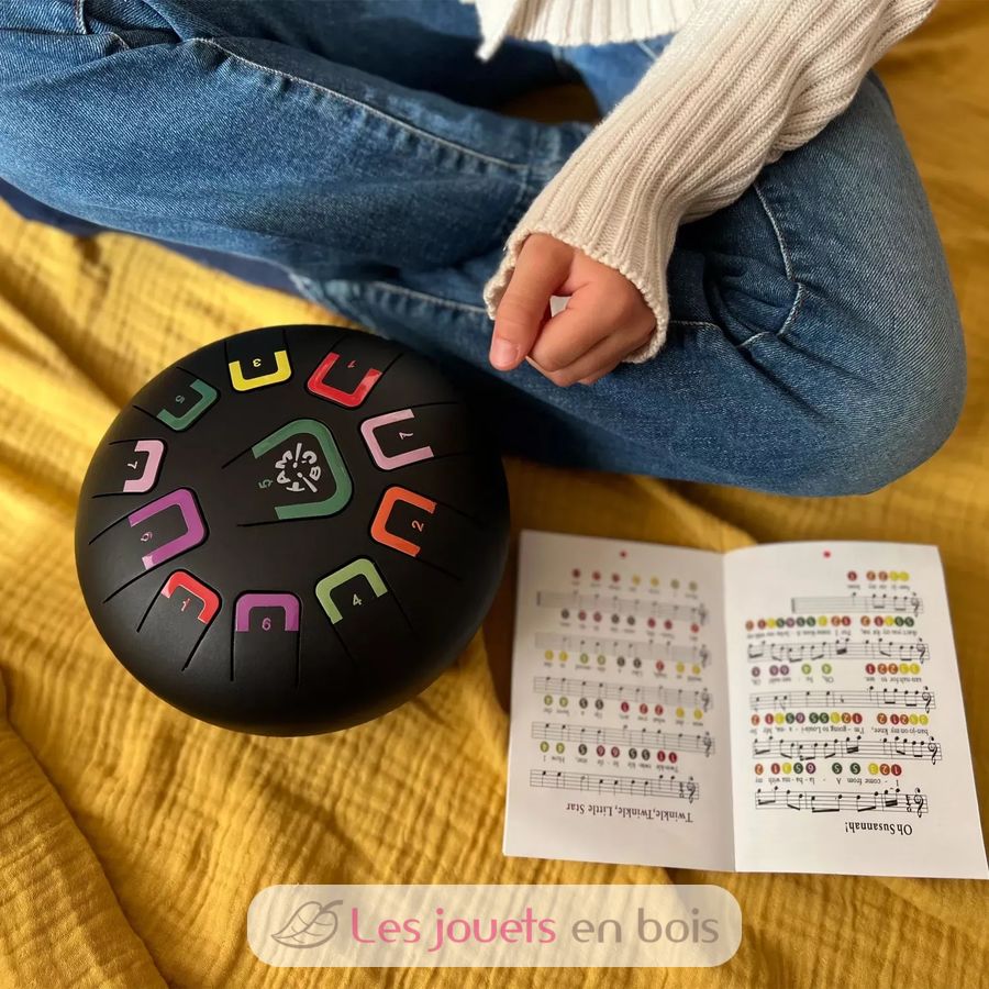 Le Tambú est livré avec des partitions en chiffres et en couleurs, très faciles à interpréter pour ceux qui débutent. Grâce à son code couleur et numérique, le tambour à langue Tambú permet de créer des mélodies magiques sans aucune connaissance musicale préalable. Cette simplicité permet aux enfants et aux adultes de profiter de la musique dès le premier instant.