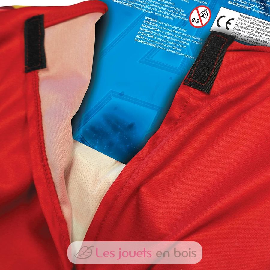 Ce déguisement pour enfant comprend un top en jersey imprimé rouge et doré avec ceinture élastique à l’arrière et système de fermeture scratch au niveau du col, ainsi qu'un masque en PVC assorti avec élastique à l'arrière. Votre enfant se sentira comme un vrai super-héros !