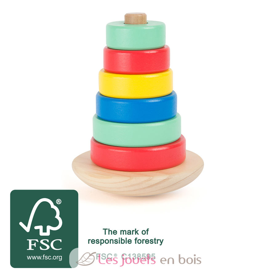 Les petits entraînent leur motricité fine de façon ludique avec ce jouet empilable en bois. Divertissement garanti !