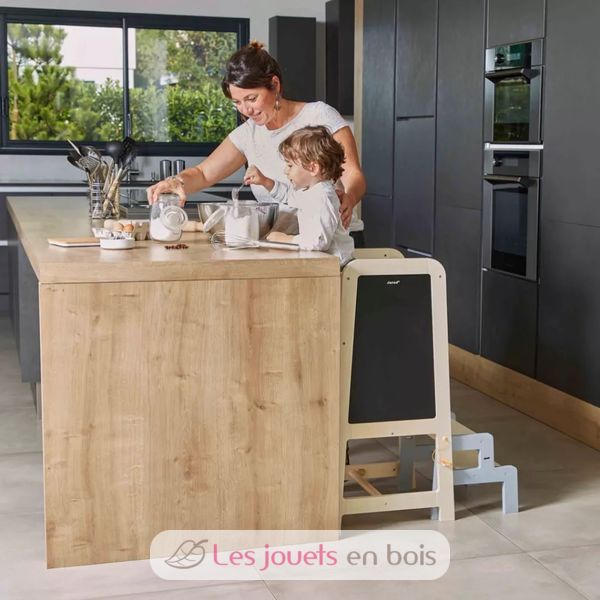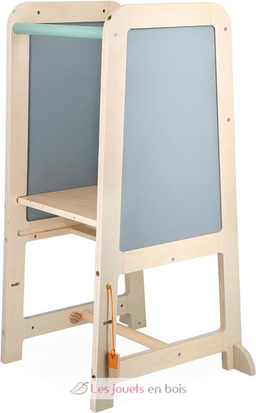 Installé sur sa tour d'apprentissage, l'enfant a les mains libres... et les parents aussi ! Cette tour d'apprentissage en bois se veut ergonomique et fonctionnelle, mais aussi ludique avec un tableau noir accompagné de 2 craies et 1 brosse. Bébé va pouvoir développer sa motricité et gagner en autonomie, tout en s'amusant à dessiner sur sa tour d'apprentissage.