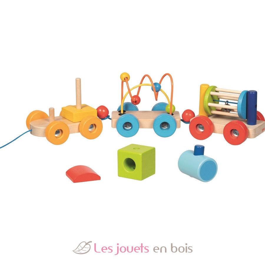 Train d'éveil en bois Rio, un jouet en bois à tirer de la marque Goki. Référence 55847.