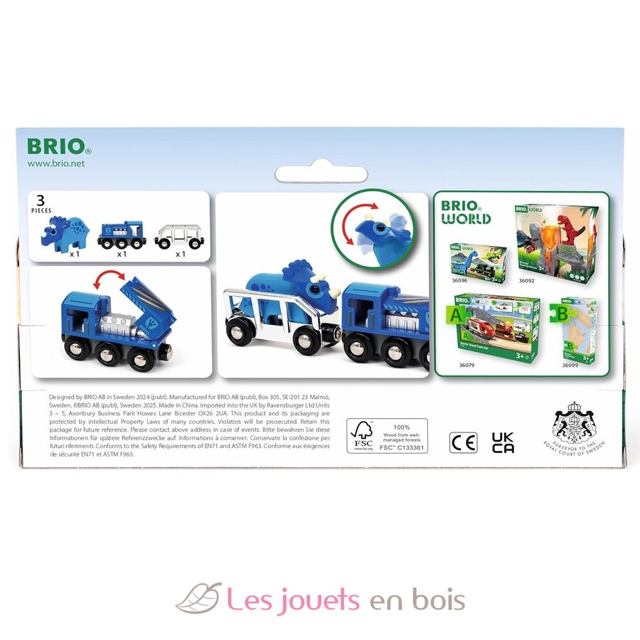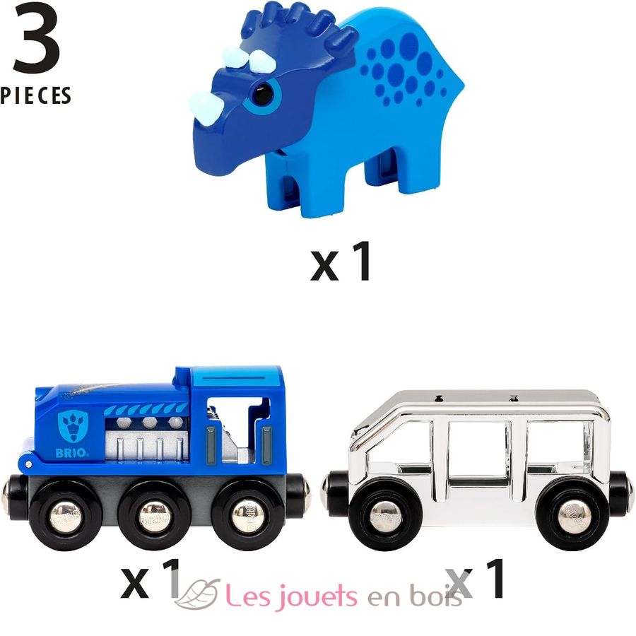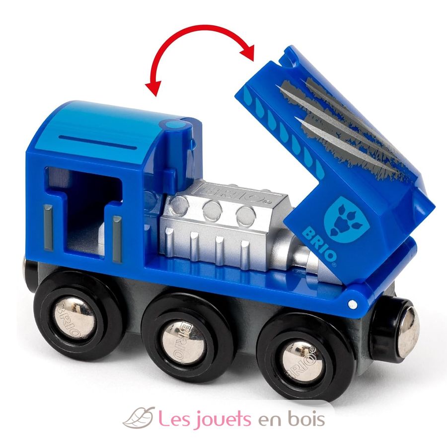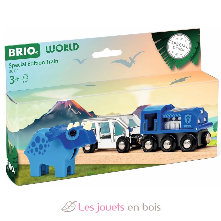 Le Train Édition Spéciale est idéal pour compléter un circuit de train Brio World. Ce train sur le thème des dinosaures se distingue par sa finition argentée et bleue, et sa figurine de tricératops bleu. Ouvrez le capot du train pour découvrir le moteur. Après quelques réglages, chargez le wagon avec le dinosaure et poursuivez votre voyage. Ce train en édition limitée n’est disponible que cette année, alors ne manquez pas l’occasion de l’ajouter à votre circuit de train.