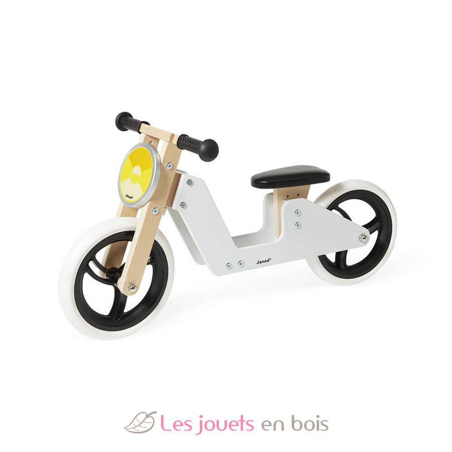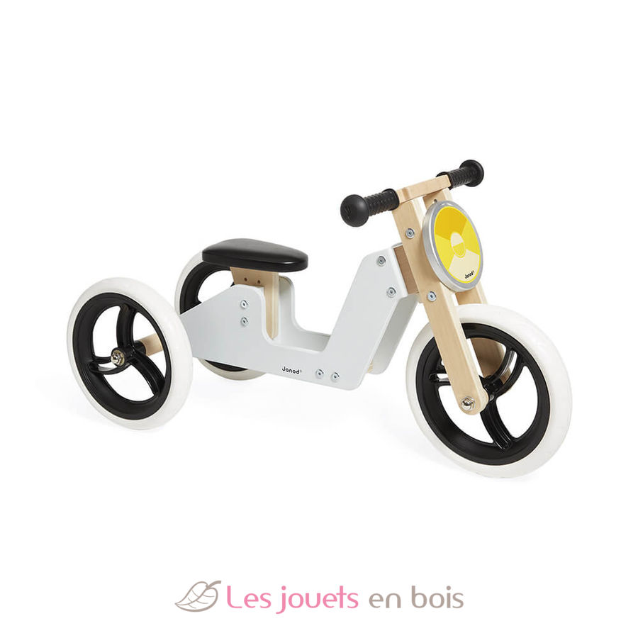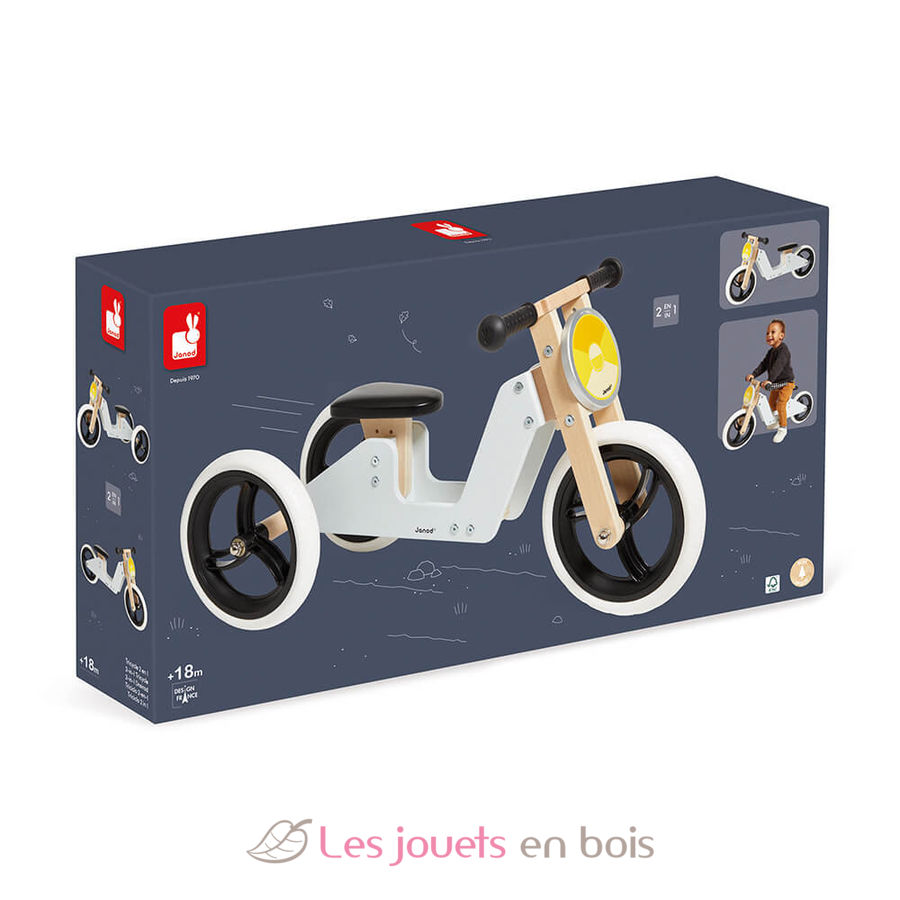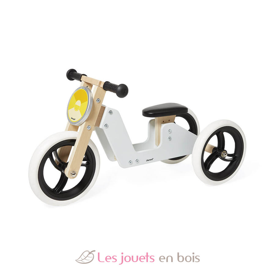 Tricycle en bois 2 en 1, un tricycle évolutif en draisienne de la marque Janod. Référence J03280.