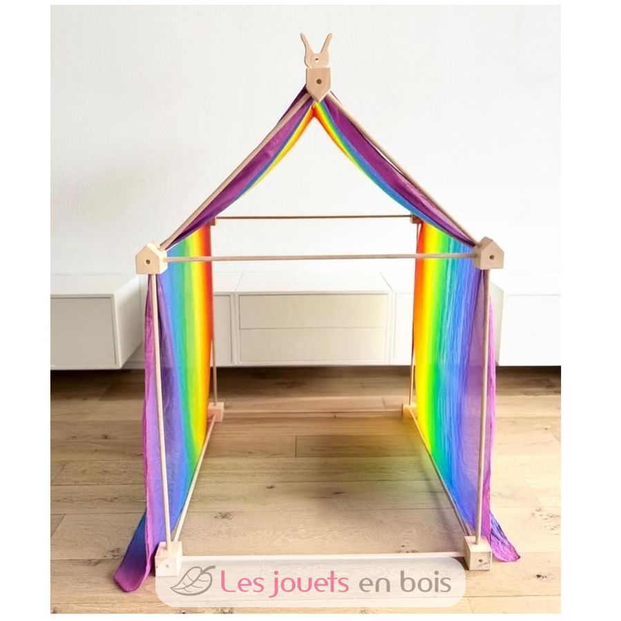 Il s’agit sans aucun doute d’une invitation très puissante au jeu libre et imaginatif. Avec quelques morceaux de tissu, les enfants peuvent rapidement construire une maison, une grotte, un abri, une cabane... Mais si on l'assemble différemment, ne pensez-vous pas que ce serait un merveilleux support pour un théâtre de marionnettes ?