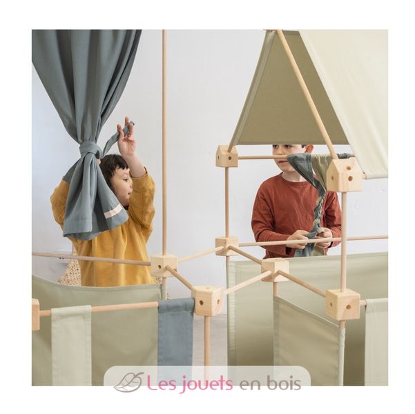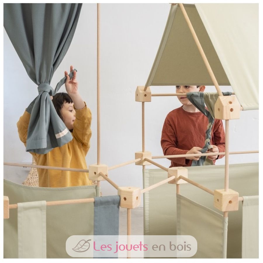 Le Trigonos est un jeu éducatif de construction géant, composé de pièces de tissu, cubes de jonction et baguettes en bois. Il stimule la curiosité, la créativité et la concentration : ses possibilités créatives sont infinies ! Et presque sans s'en rendre compte, les enfants assimilent des concepts de base de géométrie, mathématiques et physique.