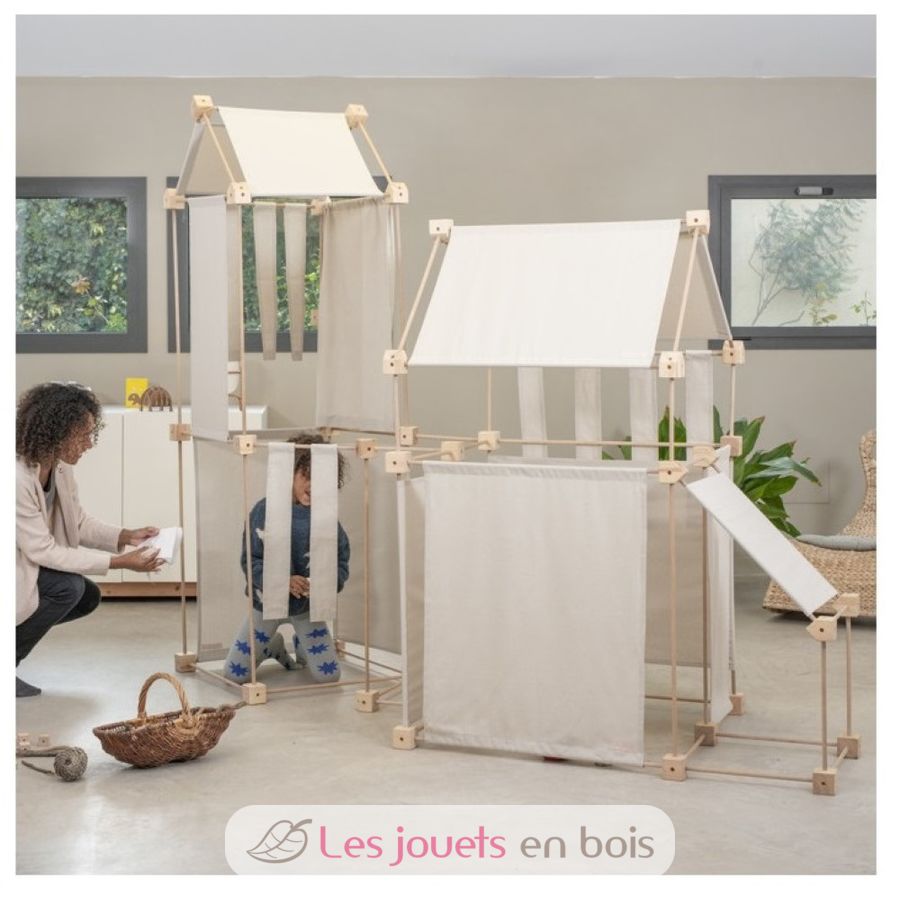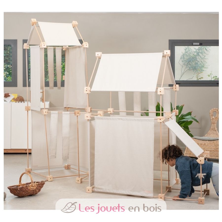 Le Trigonos est un jeu éducatif de construction géant, composé de pièces de tissu, cubes de jonction et baguettes en bois. Il stimule la curiosité, la créativité et la concentration : ses possibilités créatives sont infinies ! Et presque sans s'en rendre compte, les enfants assimilent des concepts de base de géométrie, mathématiques et physique.