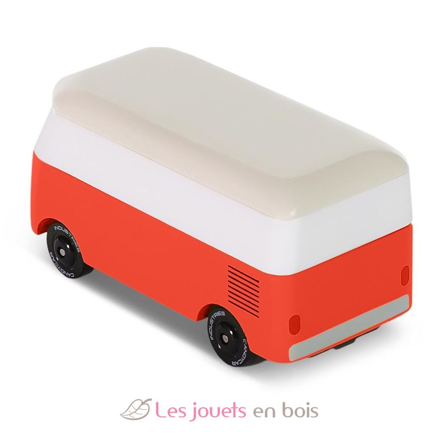 Van VW T1 Cinnamon rouge, un véhicule en bois de la marque Candylab.
