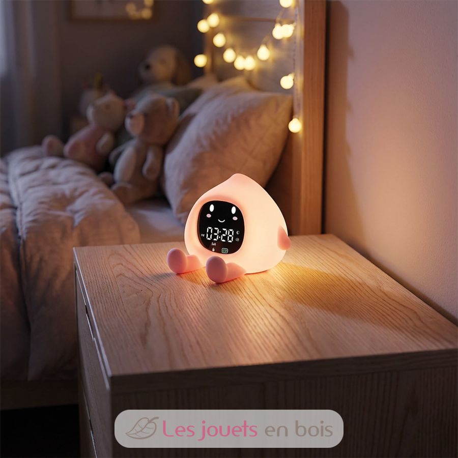Cette veilleuse en silicone souple est dotée d'une fonction réveil intégrée. Avec son affichage digital clair, l'heure est visible d’un coup d’œil, sans écran tactile compliqué.