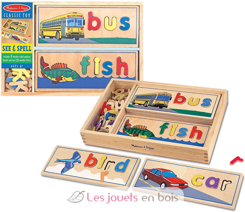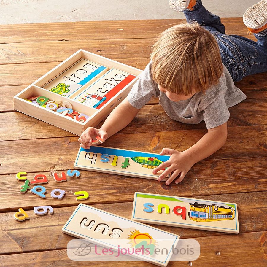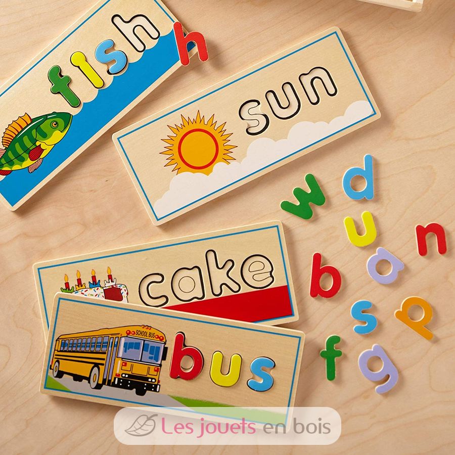Complétez un puzzle pour épeler un mot anglais ! Ce bel ensemble de puzzles en bois aide les enfants à se familiariser avec les lettres de l'alphabet et leurs sons tout en développant un vocabulaire de lecture à vue. Les lettres sont également merveilleuses pour le pochoir et beaucoup de jeux d'apprentissage. Plus de 50 lettres en bois colorées s'insèrent dans les huit planches à découper recto-verso pour épeler des mots de trois et quatre lettres. Tout ce plaisir de l'orthographe et de la motricité fine tient dans une mallette de rangement en bois compacte !