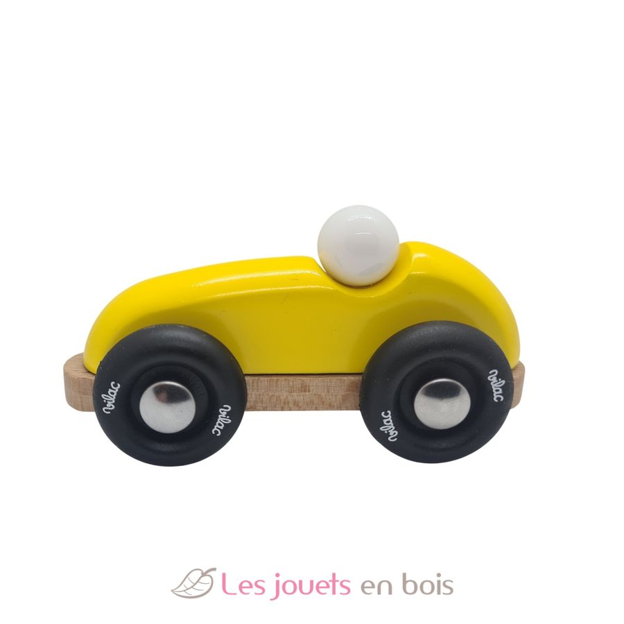 Le conducteur positionné à l'arrière de cette petite voiture en bois lui fait ressembler à une voiture de course. Vos enfants pourront jouer au pilote de courses avec ce bolide bleu. Il est d'une longueur de 9 cm. Un jouet en bois fabriqué en France (Jura) par la société VILAC.