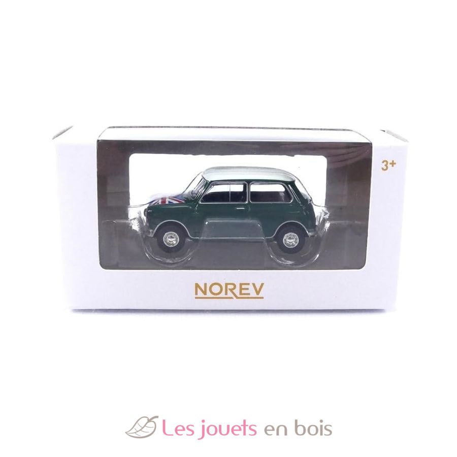 Découvrez ce modèle miniature en métal, avec des pièces en plastique, qui représente la Mini Cooper avec le drapeau britannique sur le capot.
