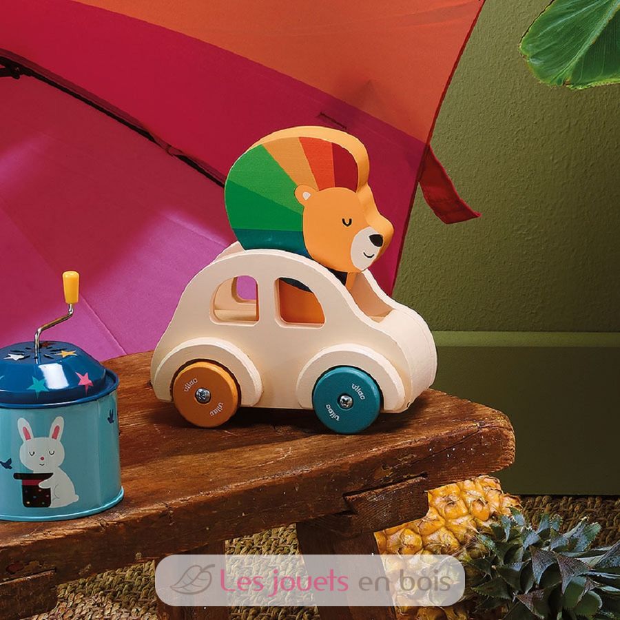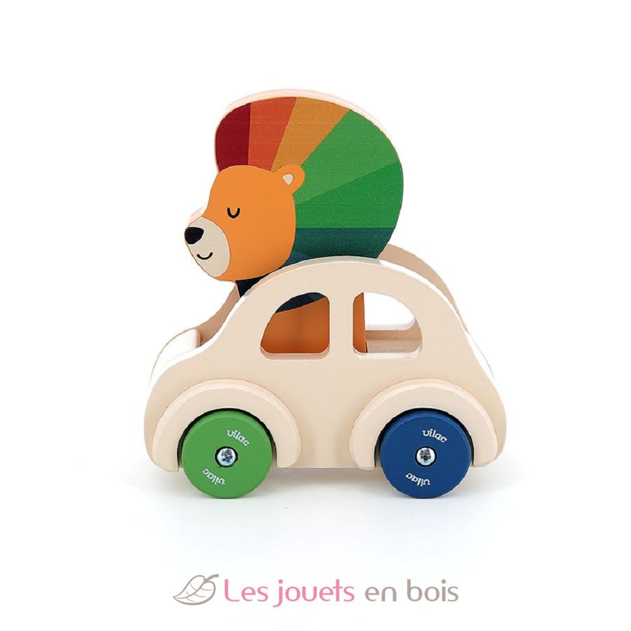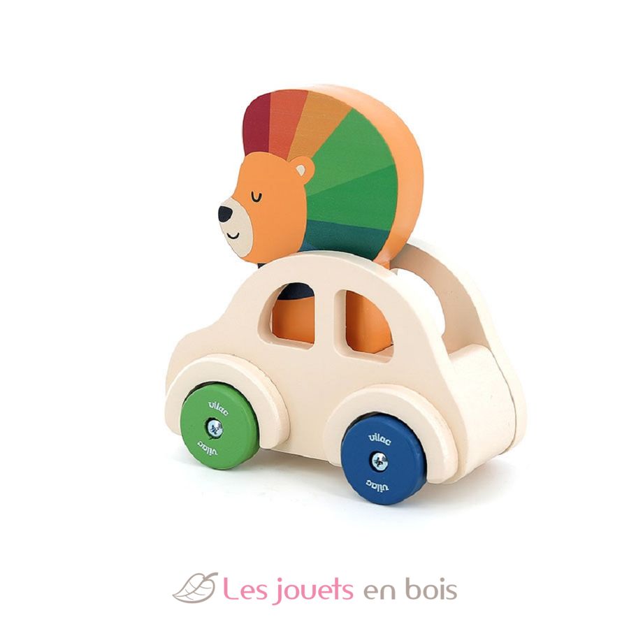 Voiture klaxon Lion, un jouet à pousser de la marque Vilac. Référence 7426Y.